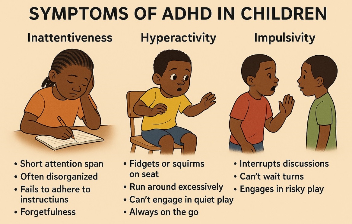 Children in Africa are frequently afflicted with ADHD, a neurobehavioural disorder. There is a need to increase awareness, train healthcare professionals, parents, teachers, and provide resources to support children living with the disorder. With early diagnosis, intervention, and reduced stigma, these children can live a productive and fulfilling life.