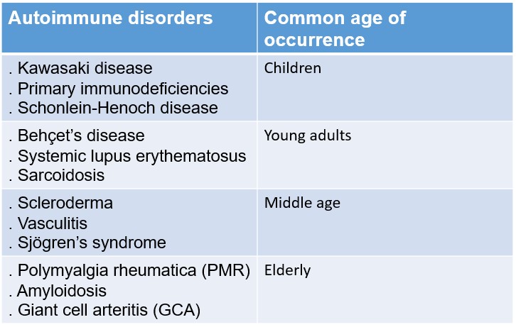 Table 2: Autoimmune disorders and affected age groups. Click on image to enlarge.