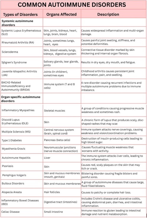 11. Martan J. Management and treatment of autoimmune diseases: Types, mechanisms and risk factors. [Internet. 2023]. Journal of Contemporary Medical Education; [Accessed 28 July 2025]. Available from here.