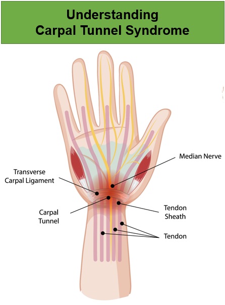 Carpal Tunnel Syndrome (CTS) happens when a nerve in your wrist, called the median nerve, gets squeezed in a narrow space known as the carpal tunnel. This usually happens when there’s extra pressure in the wrist. The first signs are often tingling, numbness, or pain in your thumb, index, and middle fingers, and the thumb side of your ring finger.
