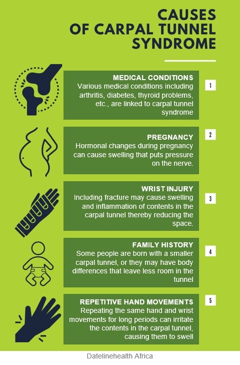 Most carpal tunnel syndrome cases happen because of several reasons working together. Research shows that women and elderly people have a higher chance of getting this condition.