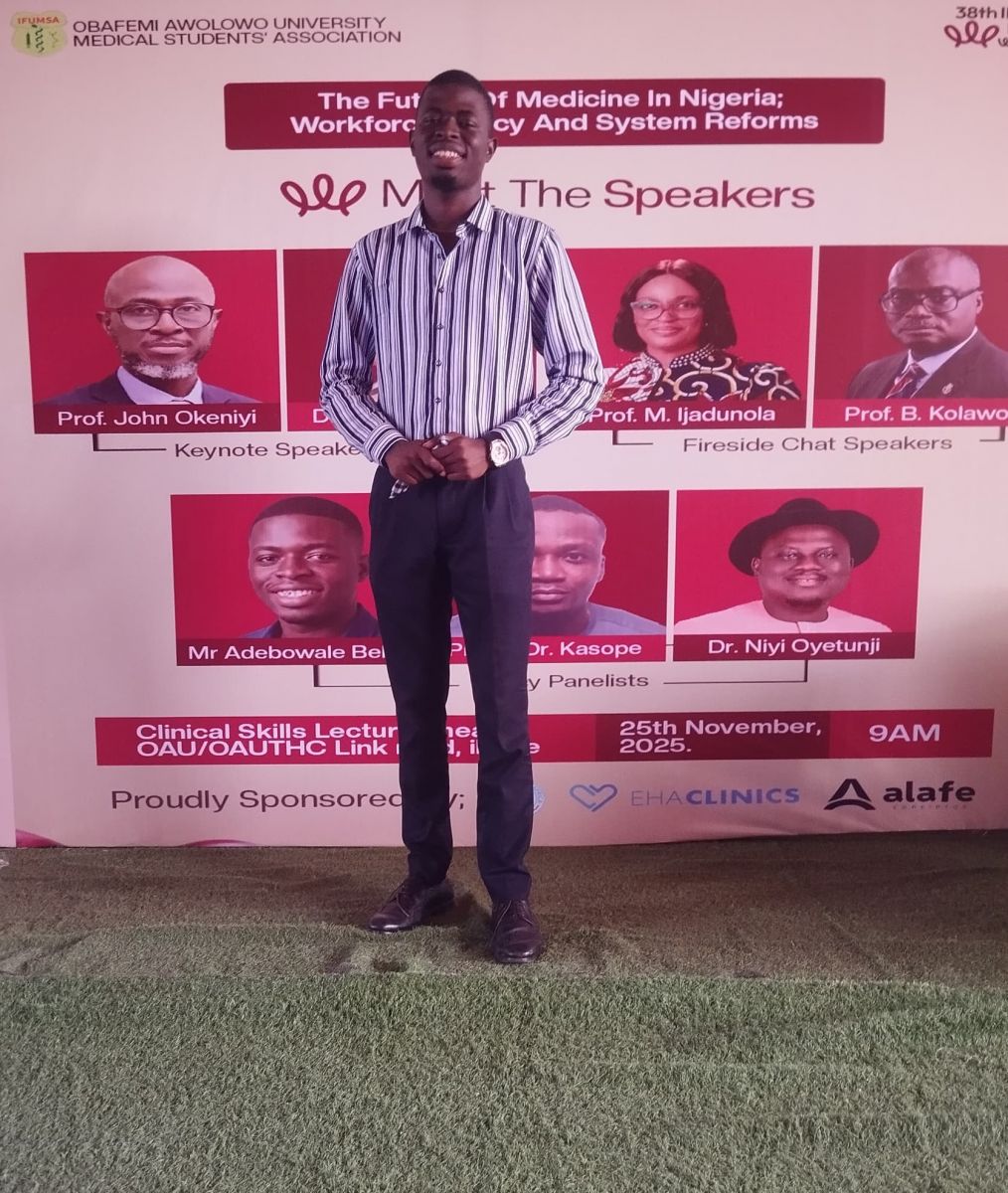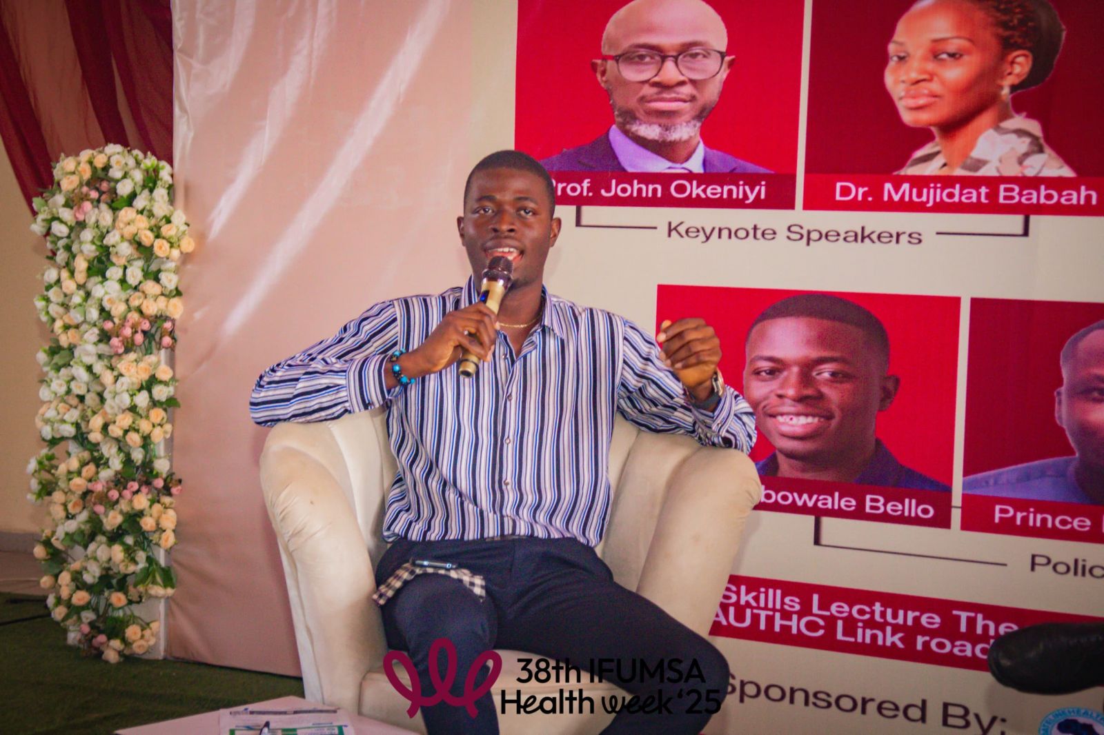 Mr. Adebowale (Debo) Bello, Datelinehealth Africa representative at the 38th Annual IFUMSA Health week, 2025, served as a keynote speaker during the fireside chat on health policy reforms and the role of media in health system accountability in Nigeria.