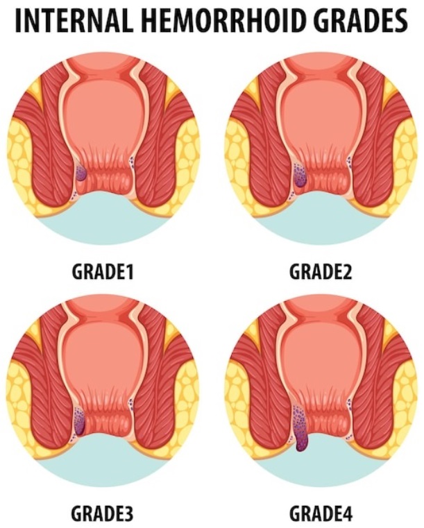 Internal haemorrhoids can further be graded based on how much they come out of the anus [3]. See fig. 3):