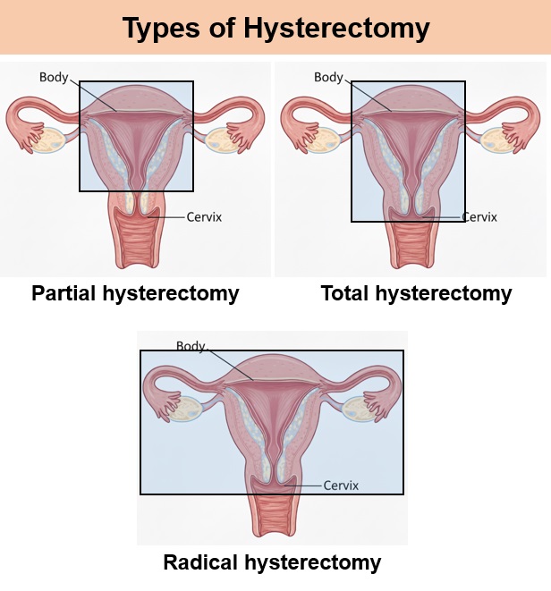 There are different types of hysterectomy, and the choice depends on several factors [1].
