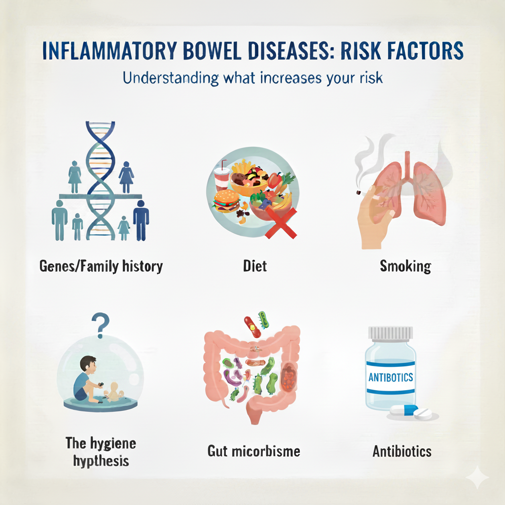 Scientists have observed that the following things (factors) that can increase people's chances of developing IBDs: