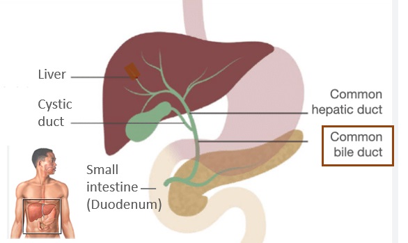 Image showing the liver, biliary tree and the common bile duct in the human body. Click on image to enlarge