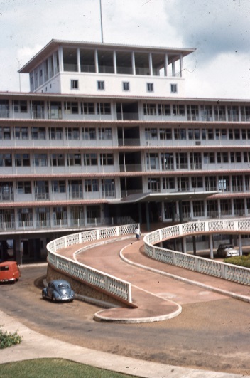 Front view of part of the central wing of the University College Hospital, Ibadan, Nigeria as it looked during my visit in 1971.