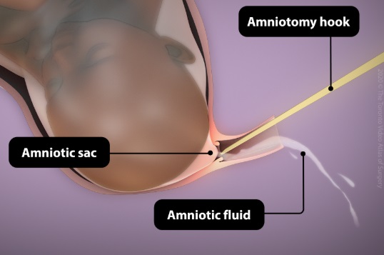 Labour induction through artificial rupture of membrane (Amniotomy). Image credit: TVASurg