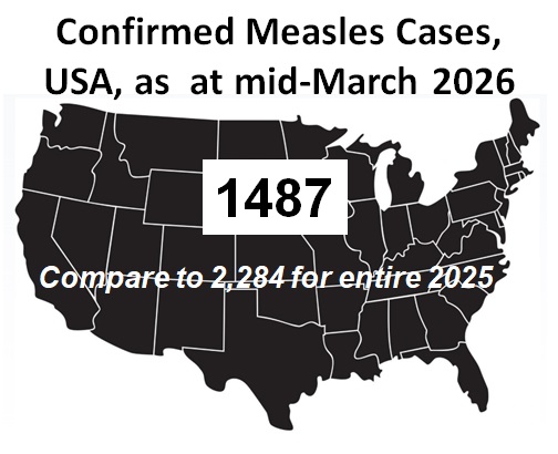 Measles Outbreak Facts USA 2026: Infographics of confirmed outbreaks as at mid-March 2026. Credit: CDC. Click on image to enlarge.