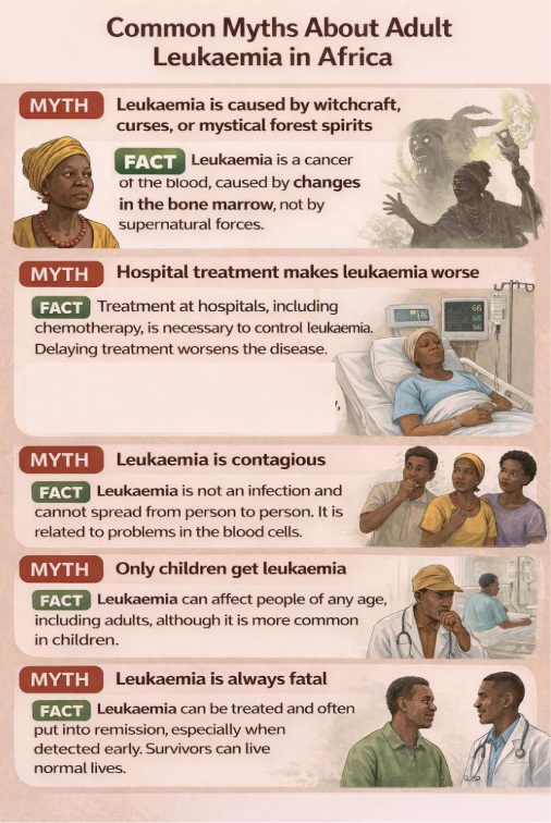 In many African communities, cancer, including leukaemia, is wrongly believed to be caused by curses, spiritual attacks, or punishment from ancestors. These beliefs delay diagnosis, proper treatment, discourage medical care, and increase suffering.