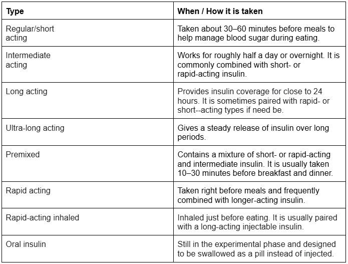 Exogenous Insulin: also known as synthetic insulin, is an insulin that comes from outside the body. It is designed to replace or supplement the insulin that the pancreas cannot produce adequately. There are different types of exogenous insulins as seen in Table 1.