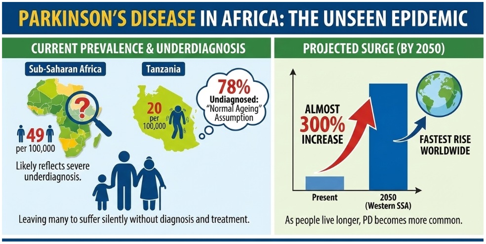 Recent studies report that PD prevalence in Sub-Saharan Africa is about 49 per 100,000 people, far lower than in regions like Latin America and the Caribbean. (1) These figures likely reflect severe underdiagnosis.