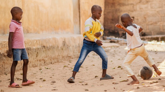 African children playing football outside their home. Click on image to enlarge. Image credit: Freepik