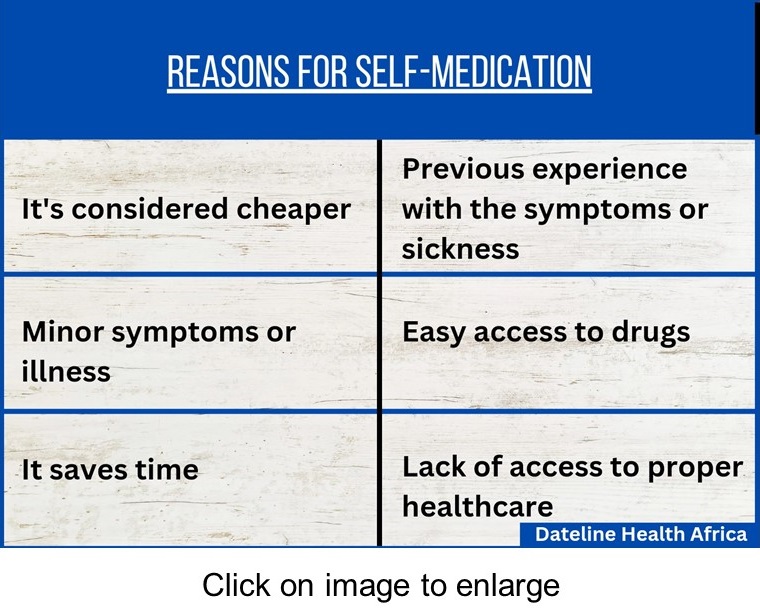 Cost of treatment, delays in healthcare centres, lack of access to healthcare professionals and facilities, and past experience with sickness have been identified as a few reasons people practise self-medication in African countries.