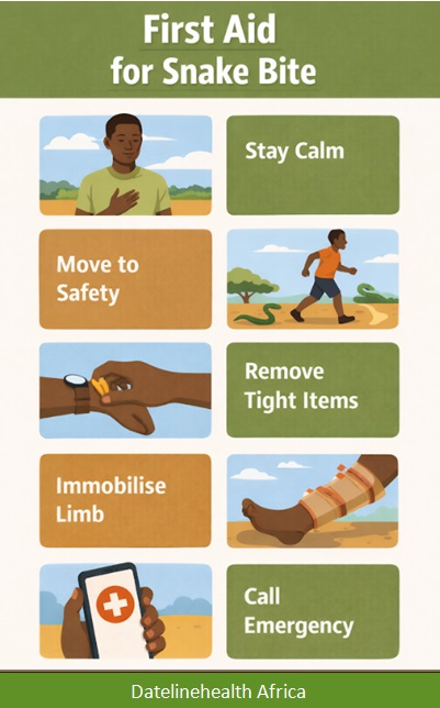 For this reason, correct snake bite first aid should be given immediately after a snake bite. Victims should then be taken as quickly as possible to the nearest health facility that is properly equipped to manage snakebite cases.
