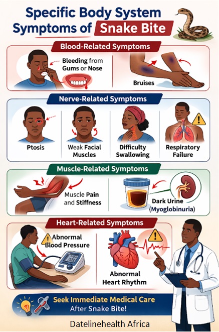 Sometimes it is just a small wound, especially if the snake is not venomous. But if the snake injects venom, the toxin can spread through the body and affect important functions like blood flow, breathing, or how the nerves and organs work.