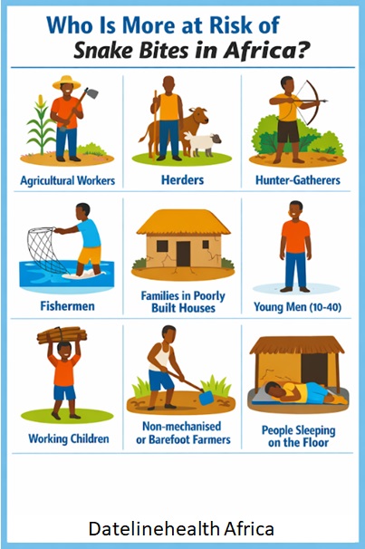 Info poster illustrating categories of people at most risk for snakebites in Africa. Click on image to enlage.