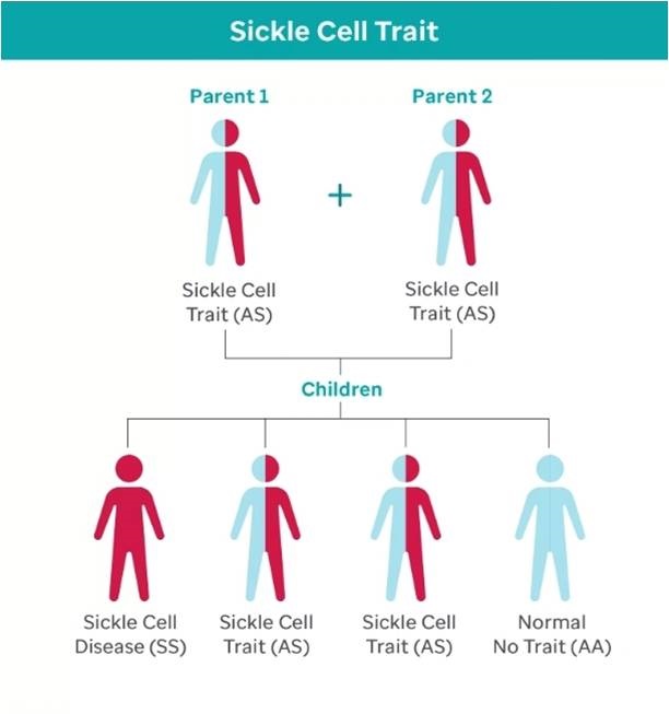 Due to this protective advantage, many of those with the trait don’t die from severe malaria and pass it down to their children and the cycle continues. But SCD only occurs when a child inherits the sickle gene from both parents (SS).