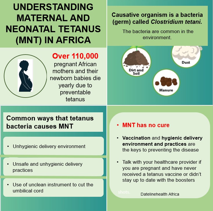 Tetanus is a preventable disease that affects African mothers and their newborn babies. The World Health Organization reports that over 110,000 African mothers and newborn babies die yearly due to tetanus. Neonates (babies aged 0-28 days old) die within seven days if they contract tetanus from their mother [1].